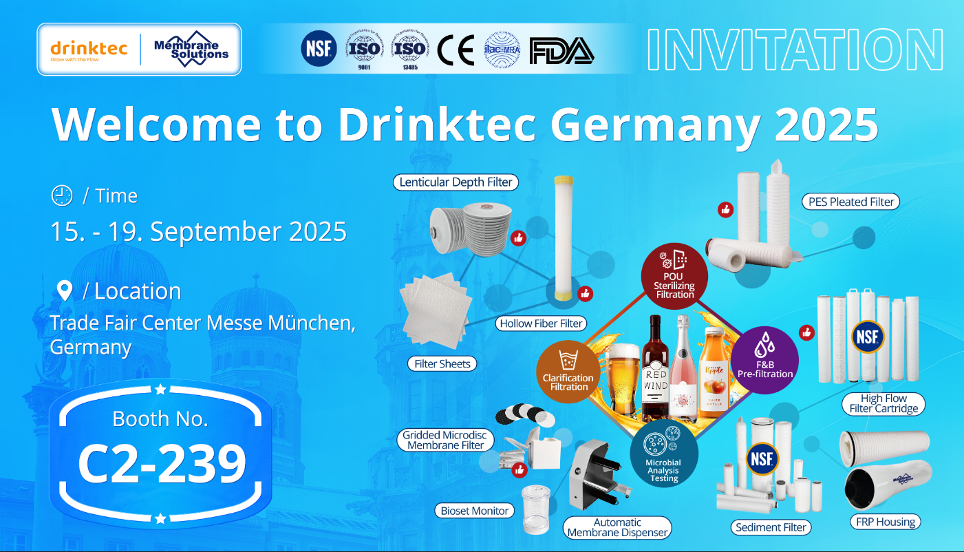 We are excited to announce that Membrane Solutions will be exhibiting at Drinktec Germany 2025, the world’s leading trade fair for the beverage and liquid food industry. The event will take place from September 15–19, 2025 at Munich Exhibition Center, and you can find us at Booth C2-239.