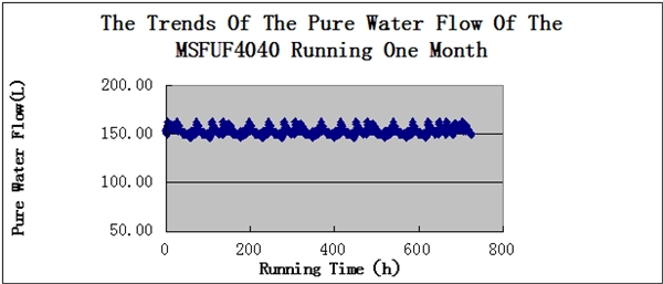 Large flow:the pure water flow of the MSFUF4040 is keeping at 150LPH/㎡ after running one month;
