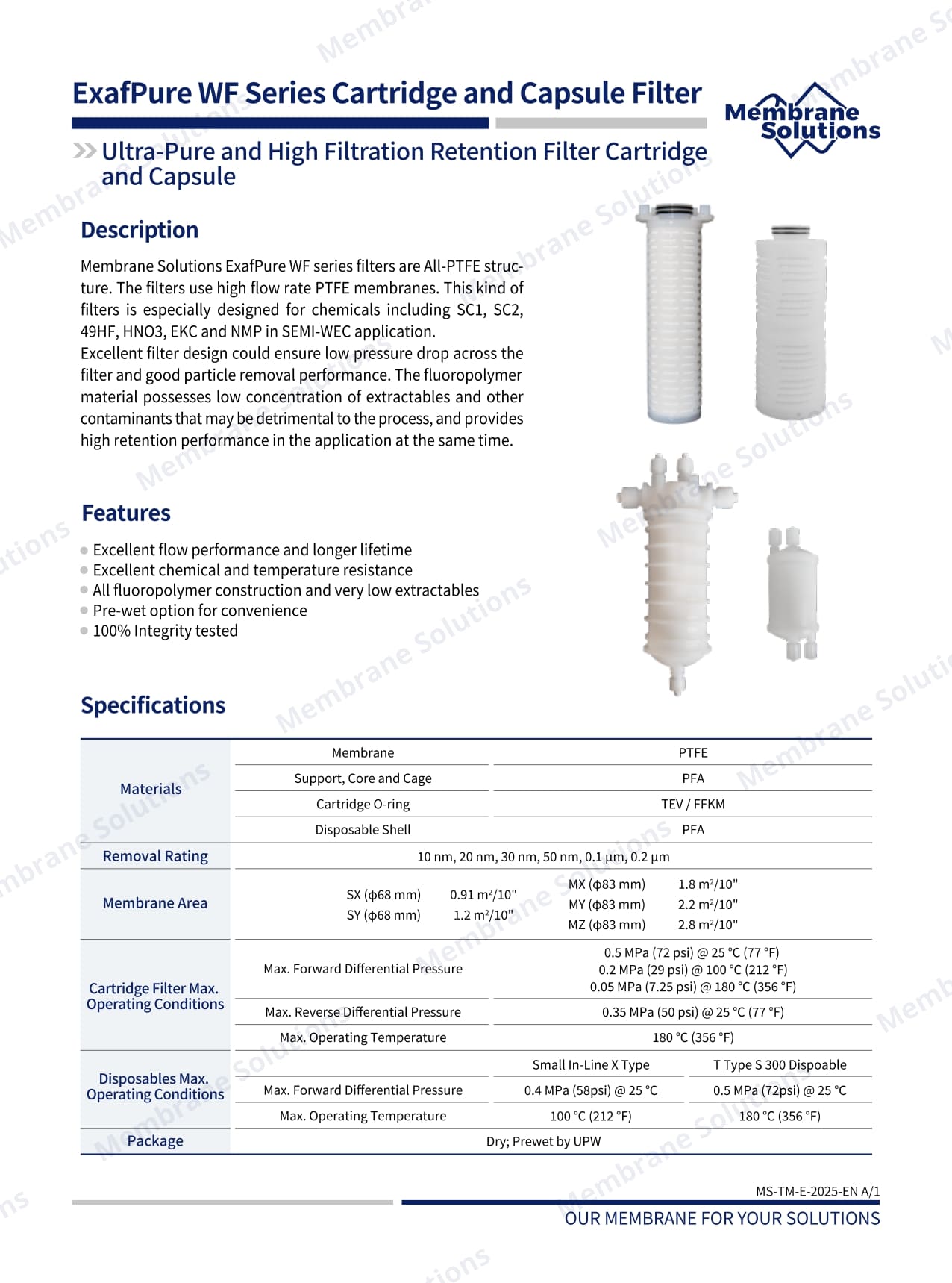 EXafPure WF Series -All PTFE Filters with Ultra-high Cleanliness