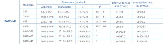 Key Features of MS Brackish Water (RO) Reverse Osmosis Membrane Elements