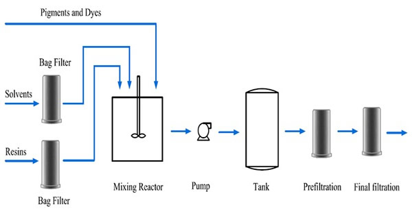 Ink could be contaminated by many sources during production. These can be of various types-fibers, solids, and semi-solids, complicating production to an even greater degree. Often, system recirculation is required to completely eliminate a contaminant. The system filter has the burden of maintaining pigment concentration and color while removing contaminants and ensuring that grind standards are met.