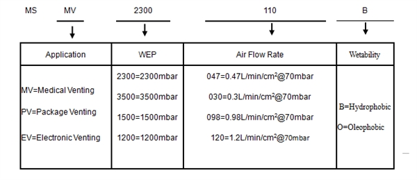 Part No. Thickness(μm) IP Rating WEP(mbar)