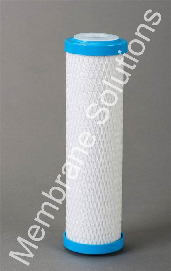 MS production of extruded activated carbon filter is made of high quality activated carbon particles as the filter medium, activated carbon particles and food-grade additives are continuously extruded and formed one filter. Activated carbon extrusion process, we can ensure that more carbon composition in the filter medium and has a low pressure drop. Extruded activated carbon filter is used in water treatment equipment to remove residual chlorine of water, chemicals, different color, odor, and subtle impurities, etc., in the pure water machine, it is used to protect the RO membrane as the third level, the service life is 3 ~ 6 months.